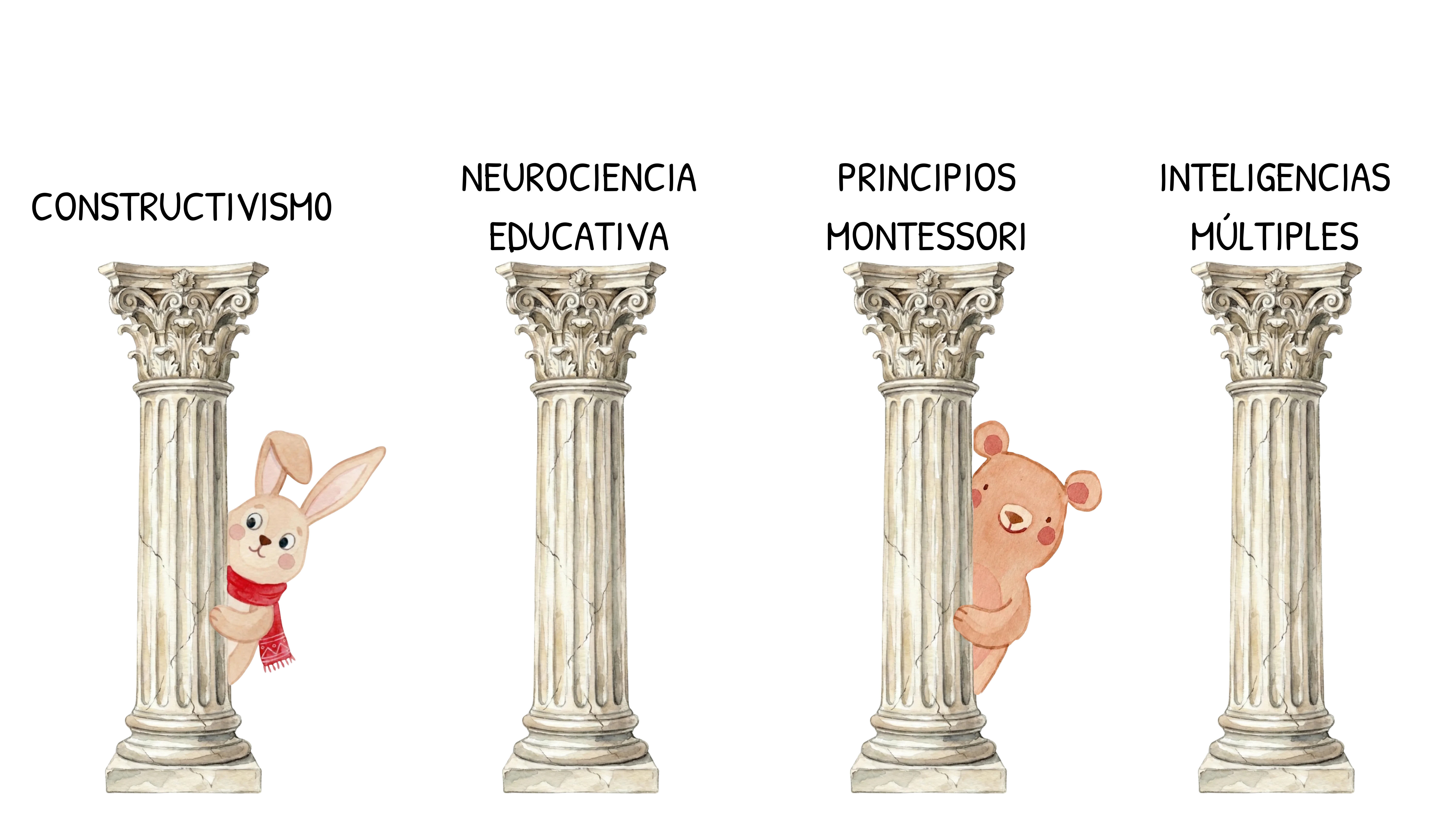 Se incorporan materiales manipulativos que fomentan la autonomía, el control del error y el aprendizaje activo, convirtiendo el aprendizaje en una experiencia tangible y ordenada.