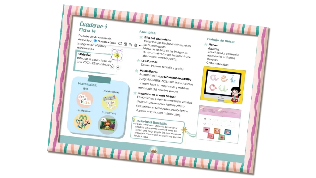 Es una propuesta pensada para centros educativos que buscan una metodología clara, estructurada y basada en el juego, que facilite la comprensión del proceso lectoescritor y conecte el aula con el hogar.