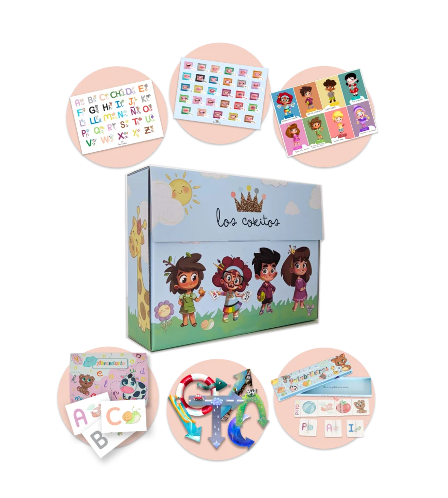 Para facilitar la implantación del método en el centro, Los Cokitos ofrece la Caja de Aula de Lectoescritura, que reúne los materiales esenciales para trabajar el método de forma organizada y coherente desde el primer día.